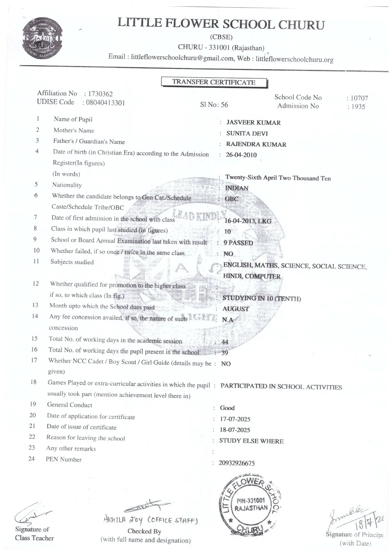 TC Issued